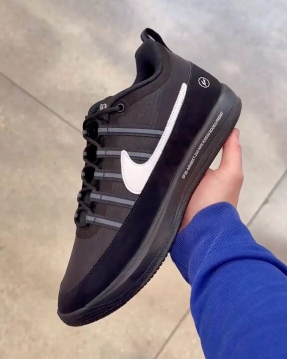 ブラック主軸のアッパー:シンプルなブラックを基調としたいシンプルな一足に見えるが、テクスチャーを加えたナイロン / スエード or ヌバックのような素材で深みをプラス。静かながら重厚感 / 高級感すら感じる一足に仕上げている。