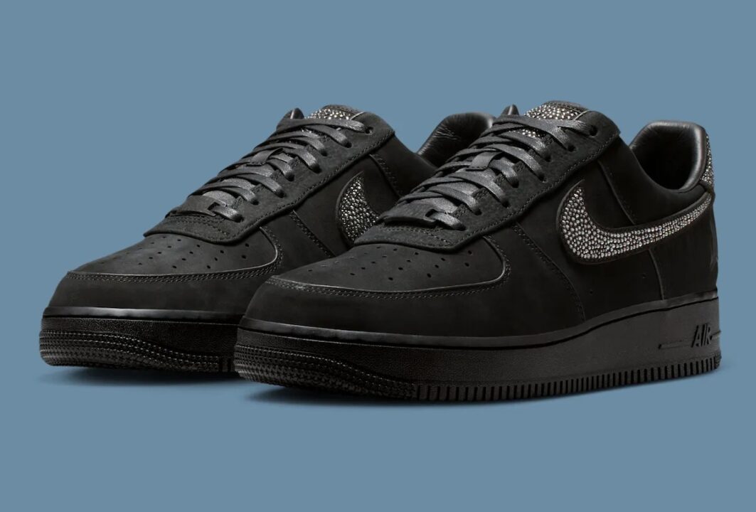 ナイキの定番モデル「Air Force 1 Low」をベースにしつつ、NBAスター選手ジャ・モラント(Ja Morant)らしさを随所に落とし込んだスペシャル仕様。全体をマットなブラックカラーでまとめ、シックで重厚な雰囲気を放ちながら、スウッシュ(サイドのロゴ)にはスワロフスキークリスタルを大胆に配置。ラグジュアリー感とストリート感が絶妙に融合している。