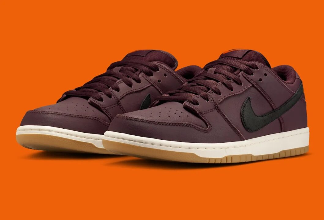 • 高級感のあるバーガンディクラッシュにクラシックなガムラバーアウトソールを組み合わせたモダンレトロなSB ダンク LOWが登場する