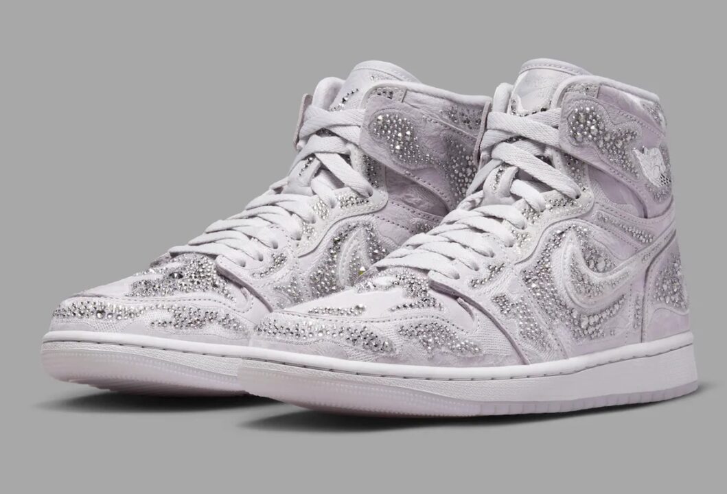 - 色味の異なるグレーを組み合わせ、スワロフスキークリスタルをスウッシュロゴにあしらった高級感溢れるAJ1HIGHが登場する